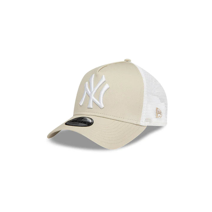 GORRA NEW ERA NEW YORK YANKEES 9FORTY BEIGE LOGO BLANCO TIPO TRUCKER JUNIOR