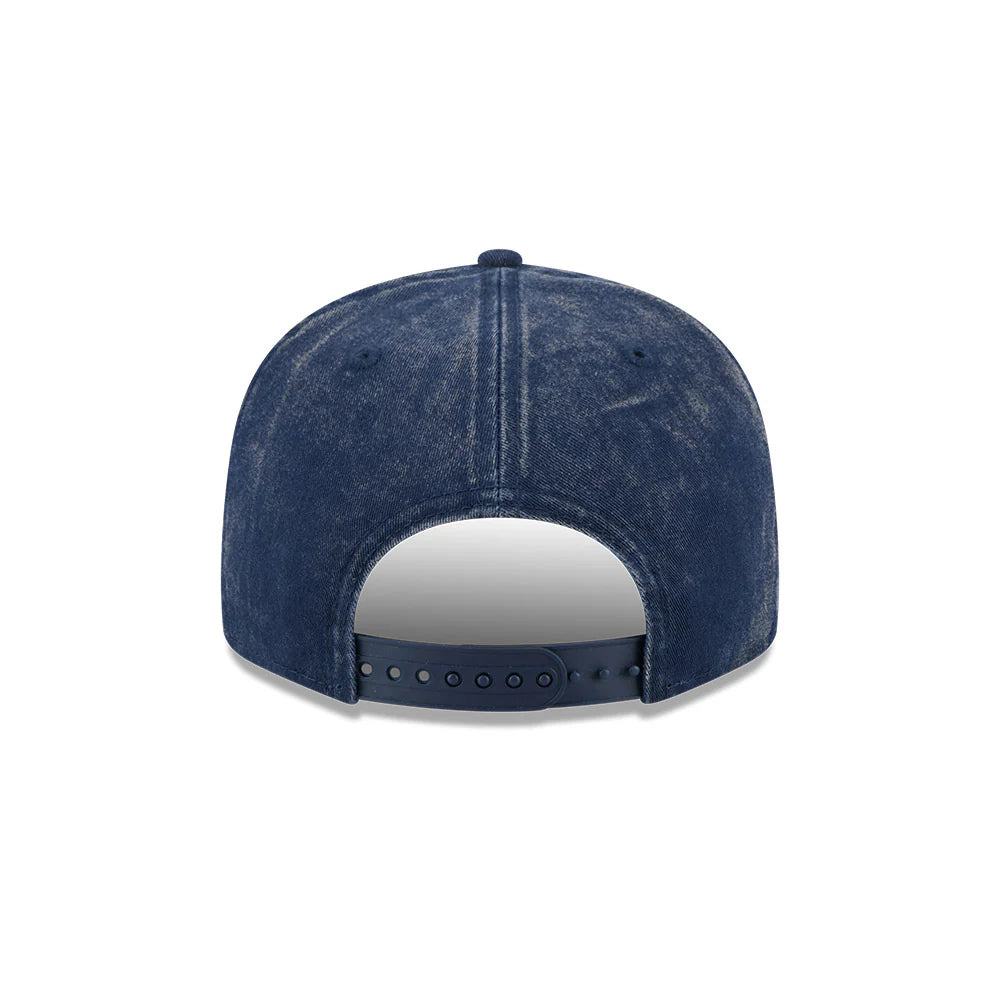 La gorra azul 9 FIFTY de Tom y Jerry, con el 85.º aniversario, luce un Tom Cat bordado en los paneles frontales y un parche del 85.º aniversario en el lado derecho. Incluye un cierre a presión en la parte trasera y una visera inferior gris