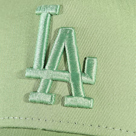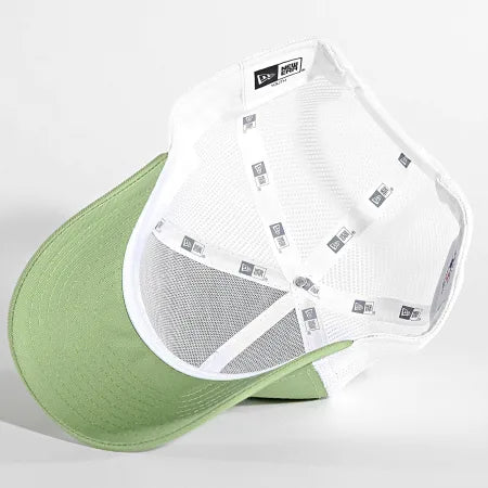 Gorra New Era los Angeles Dodgers trucker , curva , verde malla blanca, logo verde , corona alta.